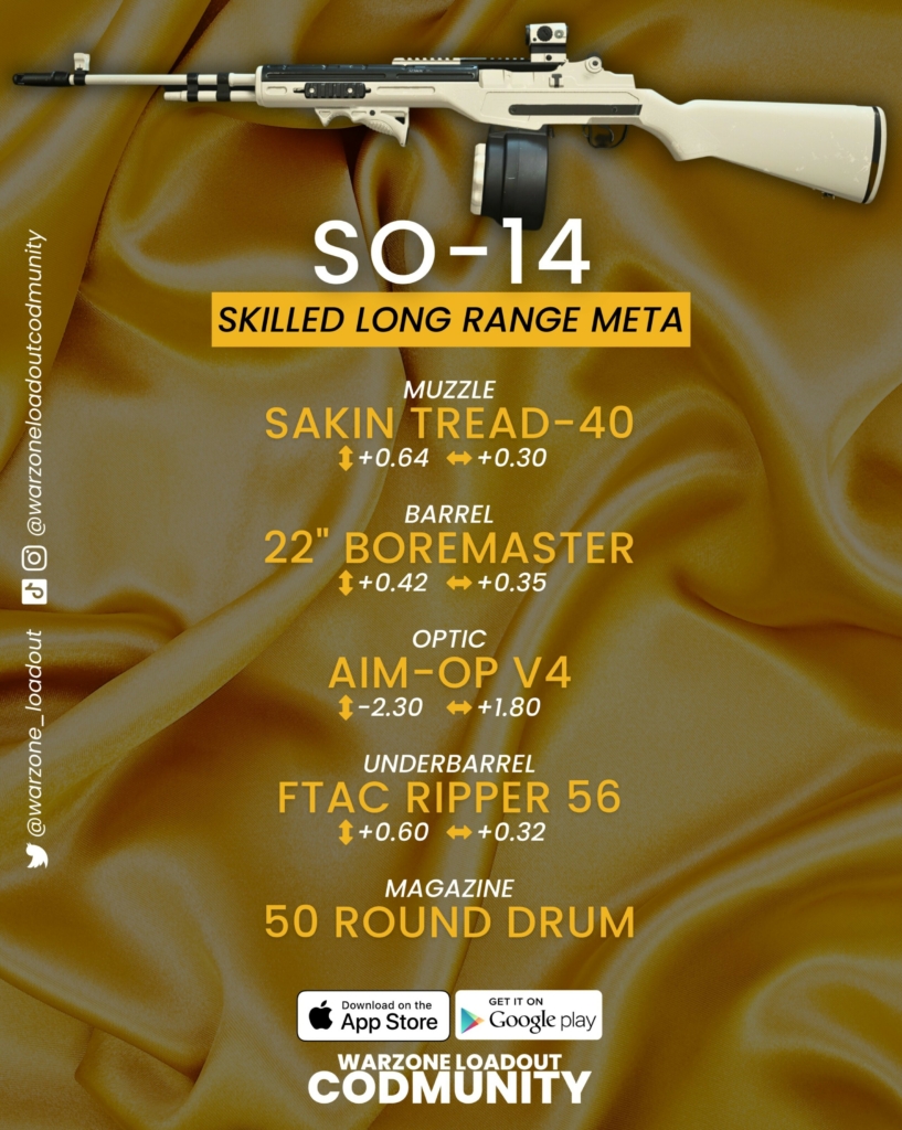 A loadoutokat ezúttal is WarzoneLoadoutnak is a hasznos weboldalának köszönhetjük. A Broadside elképesztően pusztító közelharcokban, nem véletlen az a Ranked tiltás. A SO-14 pedig a skilles játékosok kezében viselkedik igen kezesen, ha megfelelő célzással rendelkezel, akkor szinte lézerként pusztíthatsz a pályákon.