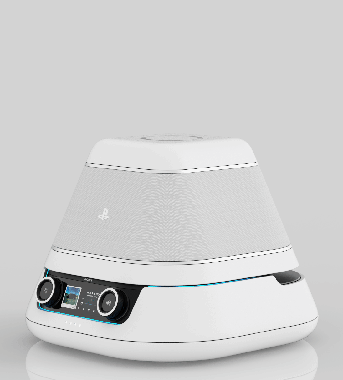 A kitalált konzol két fő móddal rendelkezik. Speaker módban a kitalált kijelző takarásban van, behajtva a készülékbe, így a ház dísze lehet. A külső kijelző segítségével azonban zenehallgatásra továbbra tökéles lehetne. A hangerőt dedikált, fizikai gombbal állíthatnánk, míg a konkrét vezérléseket az érintőkijelző végezné.
