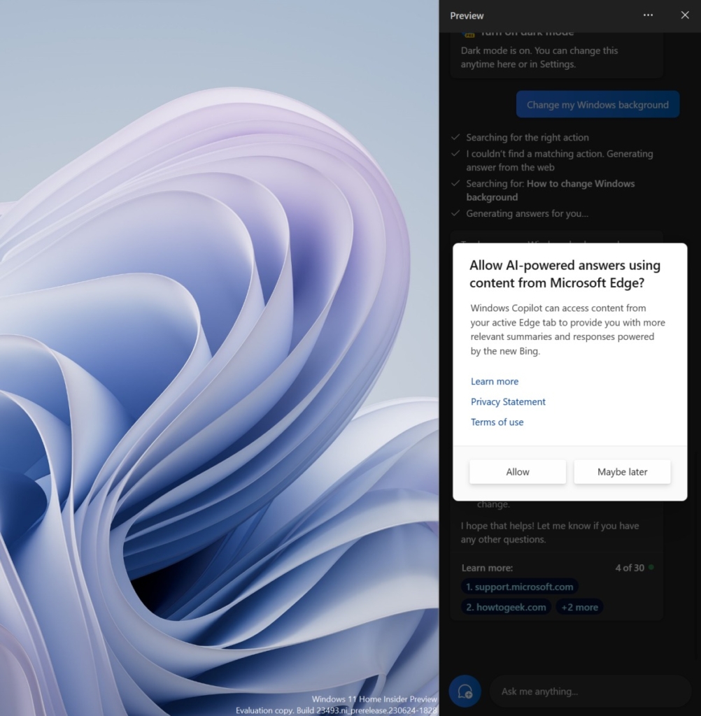 2023.07.04. – A Windows Copilot félig a Bing, félig pedig a Windows része. Tulajdonképpen egy ChatGPT AI/MI asszisztensről beszélünk, amely epekedve várja a felhasználók kérdéseit, kéréseit. A Microsoft csütörtökön jelentette be, hogy a Windows 11 Insider felhasználói kipróbálhatják az újdonságot a legfrissebb változatban. A Copilot létezése is csak május végén került napvilágra, így viszonylag gyors és jó munkát végeztek a fejlesztők.