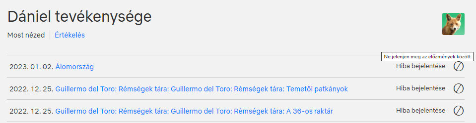 Itt aztán nyissuk le a módosítani kívánt profilt, majd kattintsunk az Aktivitás fülre. Itt fog megjelenni az összes tartalom, amit valaha megnéztünk, szépen dátum szerint kilistázva. A dolgunk már csak annyi, hogy megkeressük az eltávolítani kívánt műsort, amitől a jobb oldalt látható áthúzott kör gombra nyomva szabadulhatunk meg.