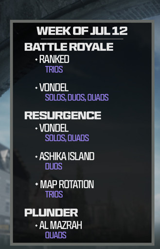 Az első időszakban a fejlesztők nem igazán szeretnék túlzásba vinni a módokat, hiszen rengeteg újdonság várja a játékosokat. A Season 2-ben végre megérkezett a kisebb pálya és a Resurgence mód, máris színesebb repertoár várt a rajongókra. Season 3-ban talán végre újra beindult az igazi Warzone életérzés, a negyedik szezonban pedig a helyszínek és a módok sokszínűsége javíthat a korábbi tapasztalatokon. A Reloaded pedig tovább csavart a megszokott működésen.
