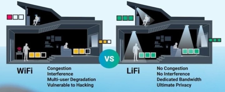 A rádióhullámokkal ellentétben sokkal nagyobb frekvencián dolgoznak a Li-Fi hálózatok. Ennek köszönhetően sokkal több csatornát működtethet a rendszer egyszerre, illetve sokkal kevésbé lesz érzékeny a hálózat a többi eszköz és külsős hálózat interferenciájára.