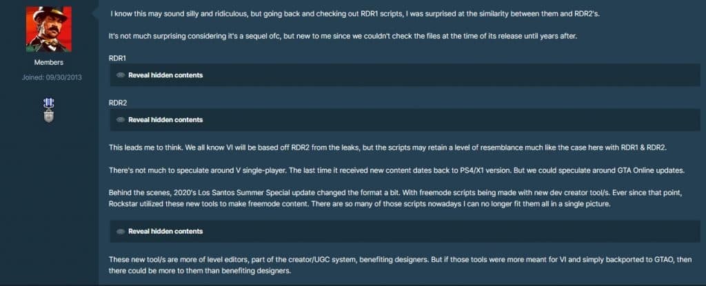A GTA Forums oldalán a jól ismert bennfentes, Tez2 érdekes felfedezéseket tett a Rockstar játékokban található scriptekkel kapcsolatban. A játékfejlesztésben a script a játék logikáját, eseményeit és interakcióit vezérlő kód írásának folyamata. A szivárogtató állítása szerint az RDR1 és az RDR2 között volt néhány hasonlóság.