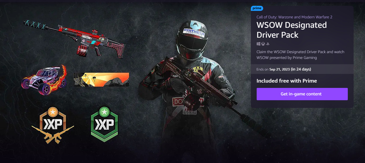 A szóban forgó Prime Gaming CoD bundle a Designated Driver csomag, ami a Prime Gaming World Series of Warzone ajándékainak része. Egy másik ilyen csomagot augusztusban osztottak szét, akkor egy 20 dolláros csomag volt ingyen a Prime Gaming révén.