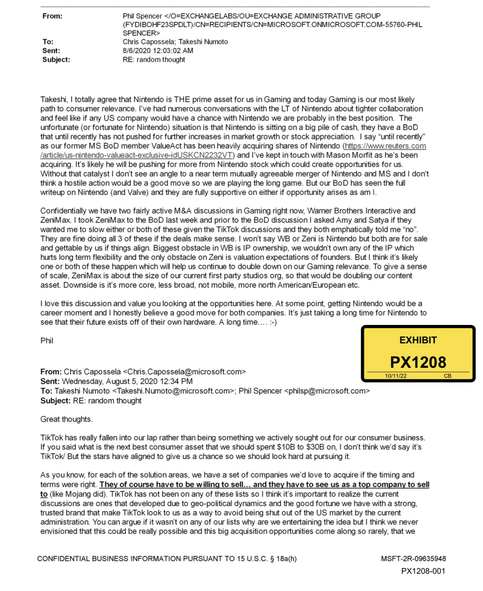 Szóval nem kicsit főhet most a Microsoft feje, hiszen a szivárgás miatt valószínűleg a teljes ütemtervet, kommunikációt, bejelentést, eseményt és marketinget is át kell szervezni. A Phil Spencer, Chris Capossela marketingvezető, és és Takeshi Numoto közötti üzenetváltások nyilvánosságra kerülése már csak hab az egyre nagyobb és krémesebb tortán, melyekből olyan megmosolyogtató ötletek buktak ki, mint például a Nintendo – illetve a Warner Bros. felvásárlása.