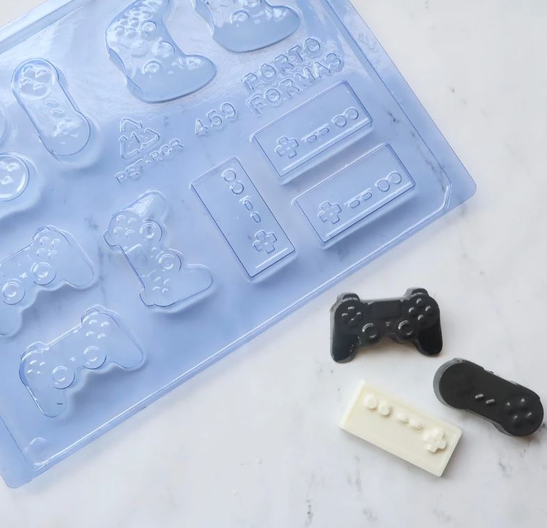 Ahogy ígértük, az összeállításban nem csak készen és jó drágán megrendelhető édességek lesznek, hanem egy virtuális csokisdoboz (tényleg – lsd. lejjebb) és hobbicukrászok-kiegészítők is. Utóbbiak egyik legmókásabb ötlete az a 11 különböző gaming kiöntőformát (5200 forintért) tartalmazó eszköz, amit a legalapvetőbb konyhai tudás birtokában bárki sikeresen használhat. Csokoládét akár mikrosütőben is cseppfolyós állapotig lehet olvasztani, aztán mehet a kívánt formába. Hagyod megszilárdulni és finoman kiütögeted belőle. Kész.