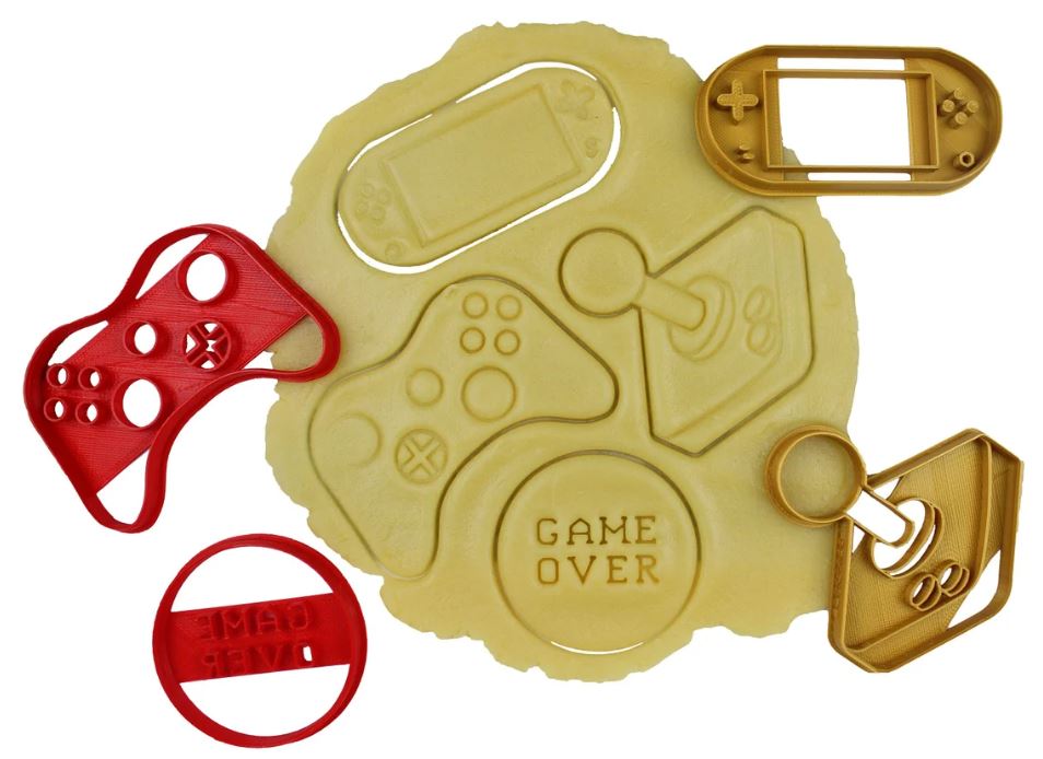Egy fokkal bonyolultabb, de még mindig nem túl nagy ördöngösség használni a gaming témájú tésztaformakészletet. Ebben kétféle kontroller, egy hagyományos joystick és a „Game Over” felirat is megtalálható. Gyúrd be, nyújtsd ki, nyomd rá, süsd ki! Ez a jópofaság mondjuk tényleg megérhet 1600 forintot.