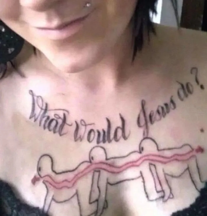 Na nem úgy, mint azok a félnótások, akik valamiért fantasztikus ötletnek látták, hogy széttetoválják magukat a lehető leggázabb, leggagyibb, legrondább, a jóízlést hírből sem ismerő firkákkal. Szerintem mindenkinek van legalább egy olyan ismerőse, aki poénból, vagy fogadásból varratott magára valamit, esetleg csak elhamarkodottan döntött egy-egy tetoválásról, az viszont már egy teljesen új szint, amiket az alábbi képgyűjteményben láthattok.