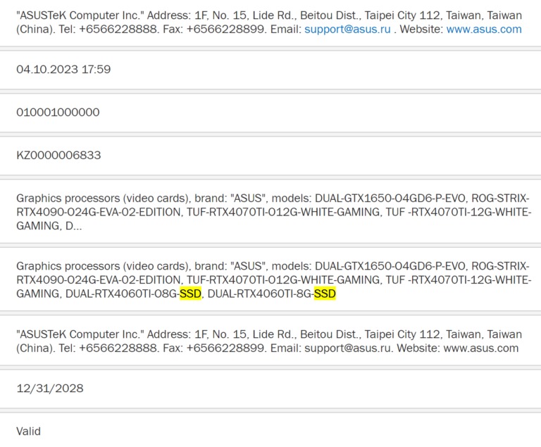 Nem kell sokat várni már a hivatalos megjelenésre sem, hiszen október 4-én az „SSD” végződésű, 4060 Ti modell regisztrációja fel is bukkant az ECC rendszerében. A VGA tehát két problémára is megoldást nyújtana. Egyrészt a gyártók így ki tudják használni a korábban be sem kötött PCIe sávokat, míg a felhasználók is kapnak egy extra SSD M.2 foglalatot így a gépükbe. Természetesen amíg ez csak egy-egy modellnél kerül kialakításra, addig borsos felárral is járhat. Könnyen lehet azonban, hogy a következő generációban már bevett gyakorlat lehet több gyártónál is.