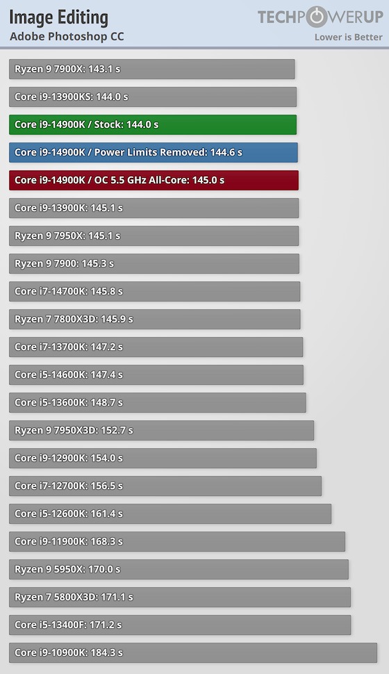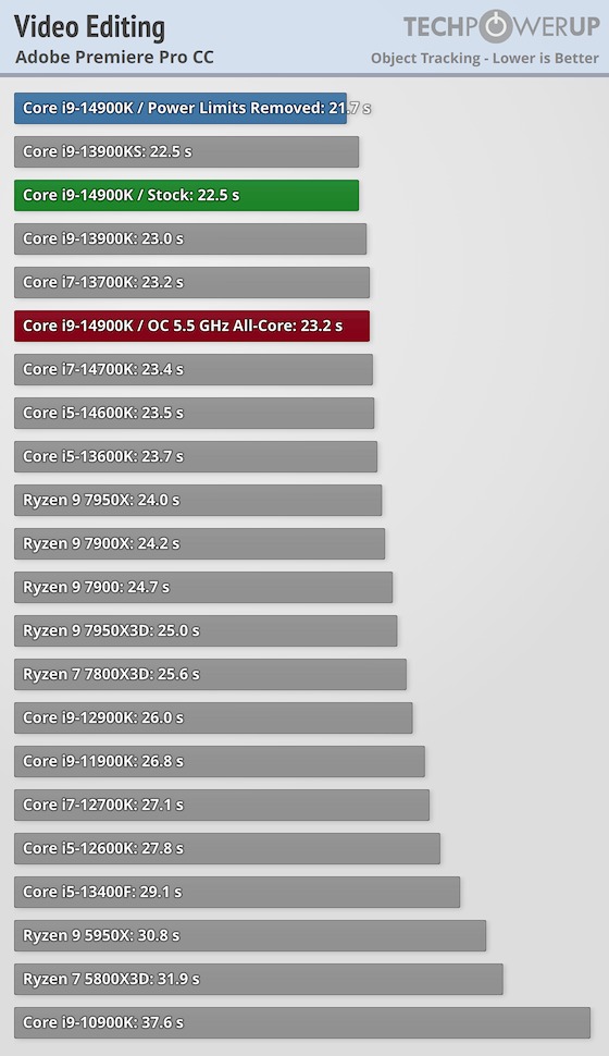 Ahogy látható, a multimédiás és egyéb alkalmazások esetében a legtöbb esetben egyértelmű Intel győzelemről beszélhetünk. Ezeknél az alkalmazásoknál az egyes fizikai, nagyteljesítményű magok és szálak is egyre jobban számíthatnak. Ebben pedig az Intel továbbra is jó, a rengeteg fizikai magnak köszönhetően pedig hasznosítani is tudják ezeket. Virtualizációnál is csak néhány tizedmásodperccel maradnak el a 7950X3D szörnyetegtől, mely igazán remek eredmény.