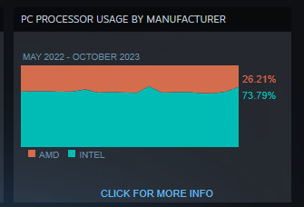 Azt már tudjuk, hogy a 6 magos példányok a legnépszerűbbek, ám remek kérdés, hogy mely márka mellé húz a PC-s játékosok szíve. Annak ellenére, hogy az AMD a Ryzen processzorokkal CPU fronton is kiváló termékekkel örvendezteti meg a játékosokat, továbbra is az Intel az úr ebben a kategóriában. Itt is hatalmas változást olvashattunk le márciusban, szépen látható az „emelkedő” a fenti képen, ám május elején, júniusban, júliusban és augusztusban is a hónapok óta megszokott 33-66/32-67 aránnyal kalkulálhatunk, míg szeptemberre ez inkább 34-65 lett lett már. Október elejére azonban ismét visszatértünk a régi kerékvágáshoz, ismét 32-68 az állás. Novemberre azonban 26-73 aránnyal találkozhatunk, mely kifejezetten nagy kilengés.
