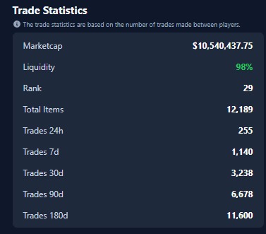 Ezt követően eljutunk az adott tárgy dedikált oldalára. Az első ami szembetűnhet, az a bal oldalon található Liquidity sáv. Itt minél nagyobb százalékot mutat az oldal, annál könnyebben eladható az adott tárgy. Azt is leolvashatjuk, hogy mennyi kelt el belőle a Steam Marketen az elmúlt 24 órában. Alatta a többi változatot (Minimal Wear, Stattrak stb.) is megpillanthatjuk. Doppler, Gamma Dopplerek esetében pedig Phase-ekre lebontva is csekkolhatjuk az árakat.