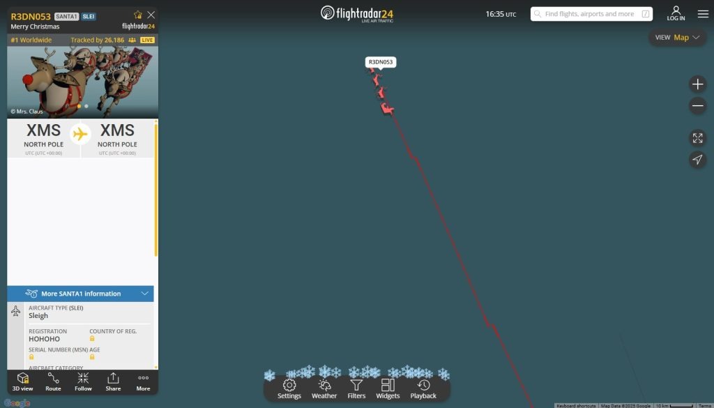 A Flightradar24 ismét feltette a Télapó szánját a különleges, nyomon követett repülőgépek listájára, SANTA1 hívójel alatt. A lista szerint a Mikulás az Északi-sarkról indul, és kontinenseken át utazik, miközben ajándékokat szállít szerte a világon.