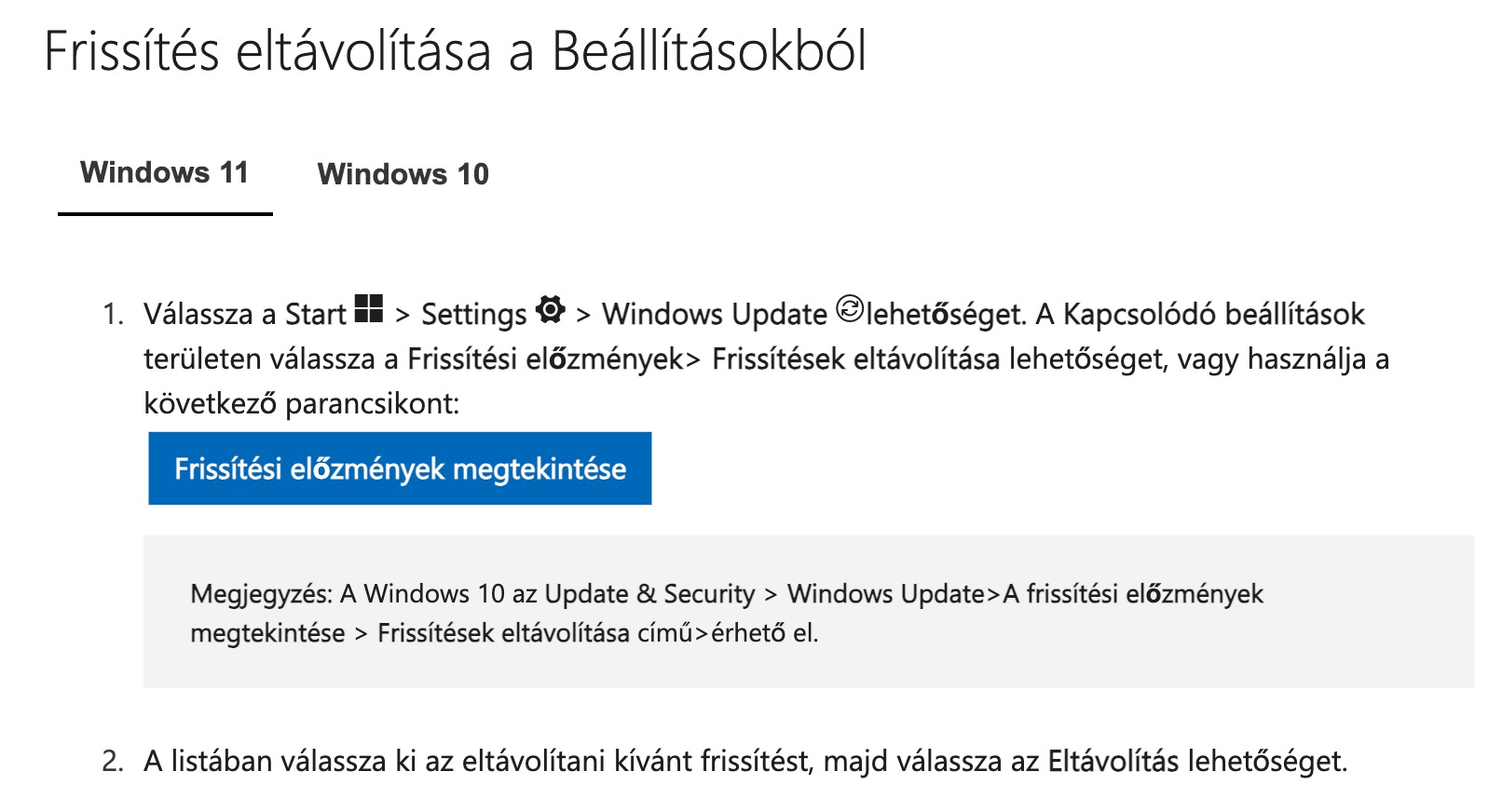 Az Nvidia szerint jelen pillanatban csak a frissítés eltávolítása oldja meg a hibákat. Szerencsére ez pillanatok alatt meg is tehető két lépésben, ebben pedig a Microsoft hivatalos leírása is segít: