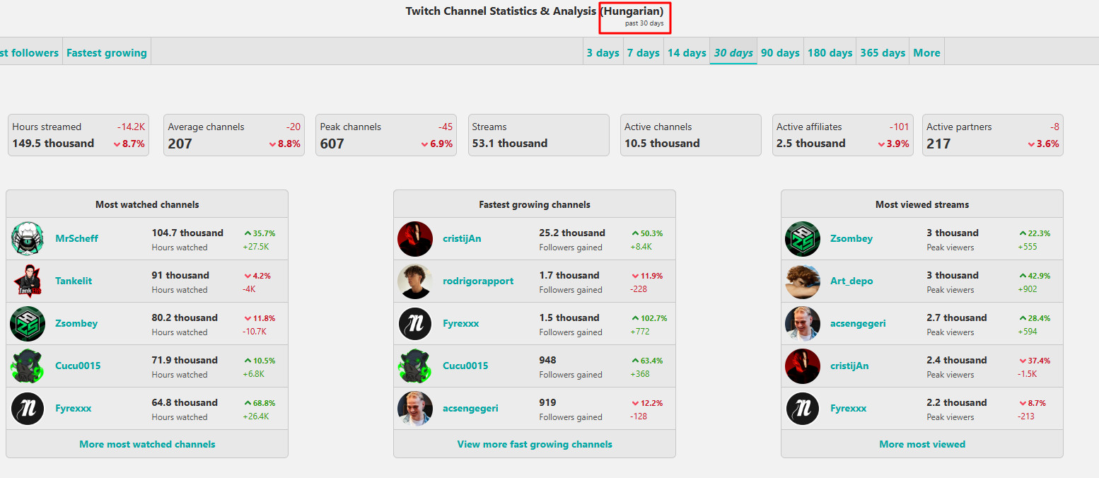 Bár a Twitch globális platform, a nézettség viszont mindig nyelvi és kulturális közösség mentén szerveződik. Magyar nyelven streamelni azt jelenti, hogy egy relatíve kis közönség figyelméért versenyzel. A nyilvános platform- és médiastatisztikák alapján (SullyGnome, TwitchMetrics, StreamCharts) jól látszik, hogy Magyarországon a Twitch napi aktív felhasználóinak száma néhány tízezer fő.